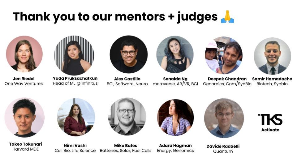 Our first hackathon was a 12 hour deep tech sprint for 16 projects, including machine learning for drug discovery in non hormonal male birth control, blockchain to track the blood and organ donation supply chain, and more projects here.