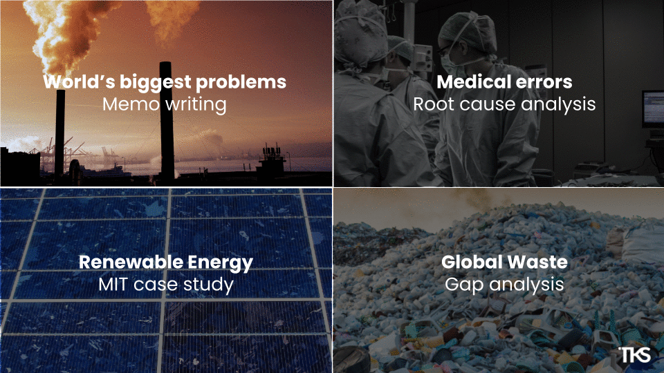 Skillsets - memo writing, root cause analysis, gap analysis, research sprints, data analysis